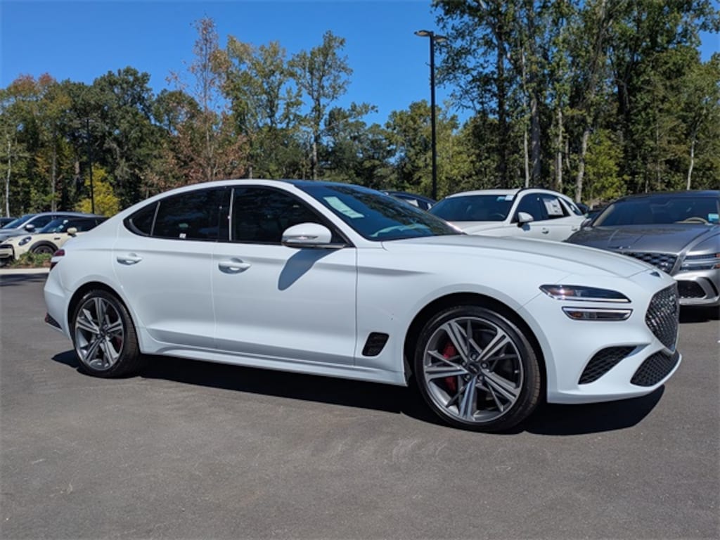 Certified. Alta White 2024 Genesis G70 2.5T Sport Prestige RWD 8-Speed Automatic I4 HEATED SEATS, VENTILATED SEAT, LEATHER SEATING, BLUETOOTH, BACK-UP CAMERA, POWER DRIVER SEAT, WELL MAINTAINED, ALL SERVICE DONE BY A CERTIFIED GENESIS TECHNICIAN, KEYLESS ENTRY, APPLE/ANDROID AUTO, FULLY SERVICED AND DETAILED, 4-Way Power Lumbar Front Passenger Seat, ABS brakes, Acoustic Front Door Glass, Alloy Pedals, Alloy wheels, Dark Chrome Grille & Daylight Opening Trim, Electronic Stability Control, Forward & Reverse Parking Distance Warning, Front dual zone A/C, Front Passenger Seat Walk-In Device, Heated door mirrors, Heated front seats, Heated Multi-Adjustable Front Bucket Seats, Illuminated entry, Integrated Memory System (IMS), Leather Seating Surfaces, Low tire pressure warning, Option Group 02, Power Folding ECM Outside Mirrors, Power Telescoping Steering Wheel, Radio: AM/FM/SiriusXM/HD Lexicon Prem Audio System, Rain-Sensing Wipers, Remote keyless entry, Sport Aluminum Trim, Sport Prestige Package, Traction control, Ventilated Front Seats, Wheels: 19" x 8.0J Fr & 19" x 8.5J Rr Sport Alloy, Wide Sunroof, Wireless Phone Charger.