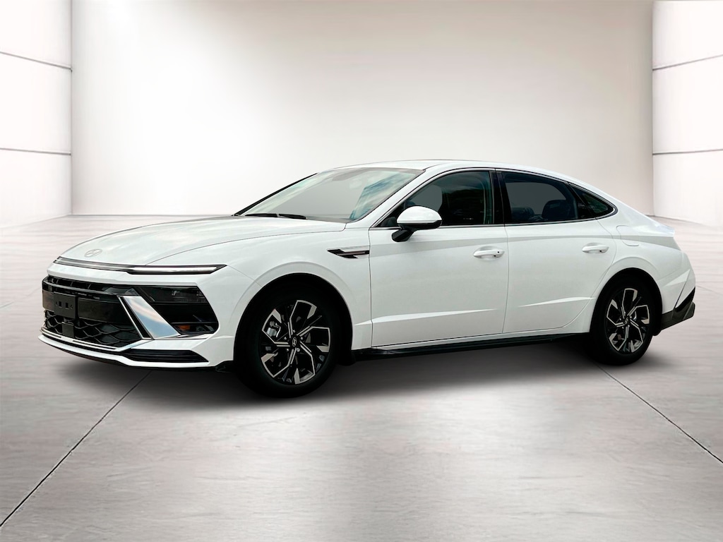 Serenity White 2025 Hyundai Sonata SEL AWD 8-Speed Automatic I4 4D Sedan Gray Cloth.