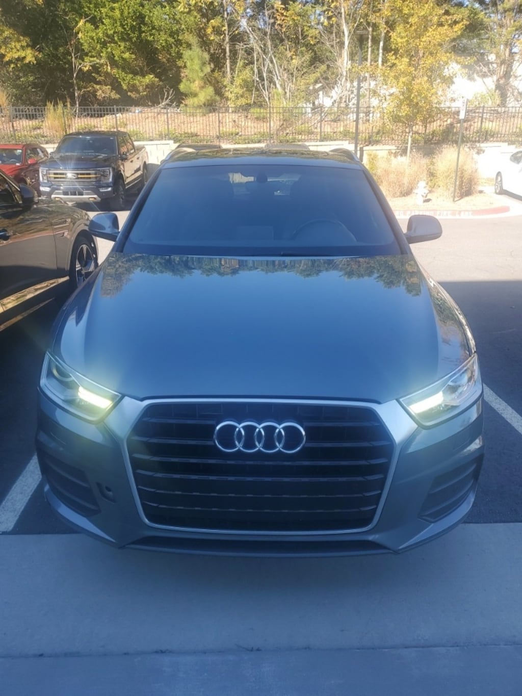 2017 Audi Q3 2.0T Premium FrontTrak 6-Speed Automatic with Tiptronic 2.0L 4-Cylinder TFSI 10 Speakers, 4-Wheel Disc Brakes, ABS brakes, Air Conditioning, Alloy wheels, AM/FM radio, Automatic temperature control, Axle Ratio: TBD, Brake assist, Bumpers: body-color, CD player, Delay-off headlights, Driver door bin, Driver vanity mirror, Dual front impact airbags, Dual front side impact airbags, Electronic Stability Control, Exterior Parking Camera Rear, Four wheel independent suspension, Front anti-roll bar, Front Bucket Seats, Front Center Armrest, Front dual zone A/C, Front fog lights, Front reading lights, Fully automatic headlights, High intensity discharge headlights: Xenon plus, Illuminated entry, Leather Seating Surfaces, Leather Shift Knob, Leather steering wheel, Low tire pressure warning, Occupant sensing airbag, Outside temperature display, Overhead airbag, Overhead console, Panic alarm, Passenger door bin, Passenger vanity mirror, Power door mirrors, Power driver seat, Power moonroof, Power passenger seat, Power steering, Power windows, Radio data system, Radio: Audi Concert, Rain sensing wipers, Rear anti-roll bar, Rear fog lights, Rear reading lights, Rear seat center armrest, Rear window defroster, Rear window wiper, Remote keyless entry, Roof rack: rails only, Security system, Speed control, Speed-sensing steering, Split folding rear seat, Spoiler, Steering wheel mounted audio controls, Tachometer, Telescoping steering wheel, Tilt steering wheel, Traction control, Trip computer, Turn signal indicator mirrors, Variably intermittent wipers, Wheels: 7.0" x 18" 5-Arm Turbine Design.