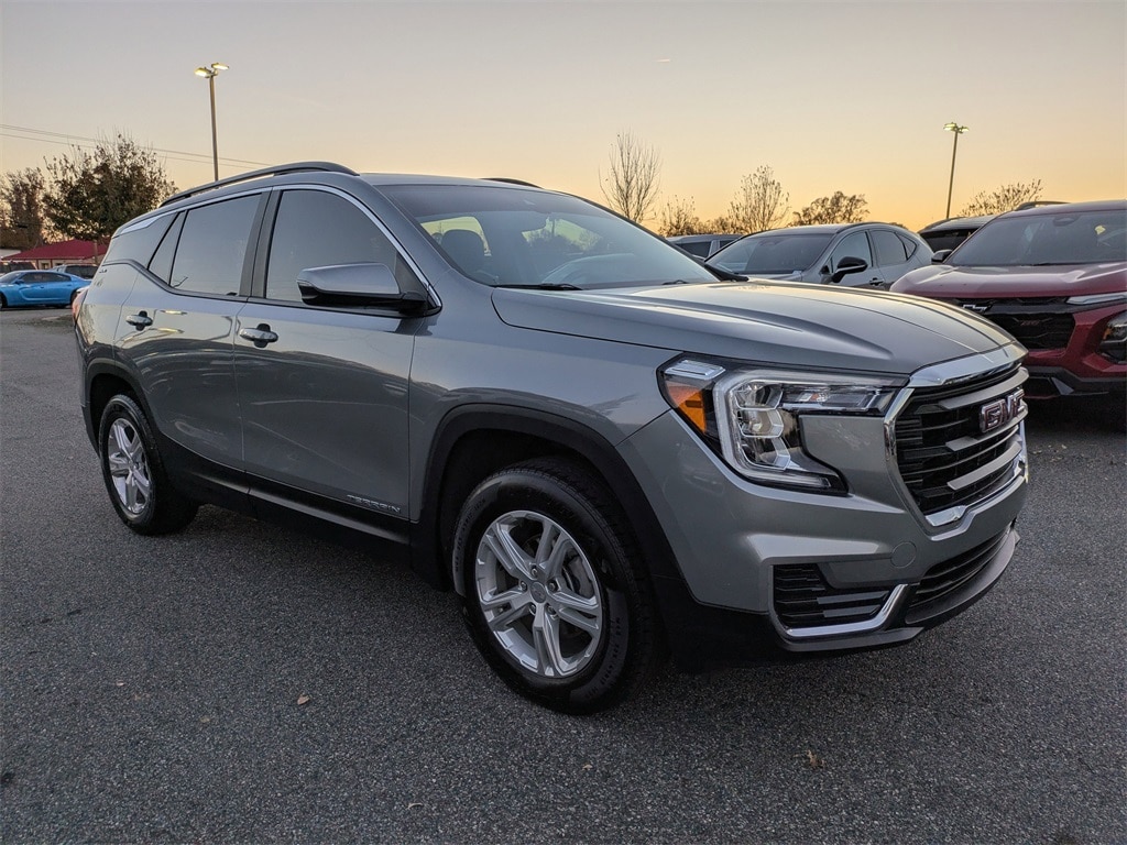 2023 GMC Terrain SLE AWD 9-Speed Automatic 1.5L DOHC AWD, 2 USB Data Ports w/Auxiliary Input Jack, 3.47 Axle Ratio, 4-Way Manual Driver's Seat, 4-Way Manual Front Passenger Seat, 4-Wheel Disc Brakes, 4.2" Multi-Color Driver Information Screen, 6 Speakers, 6-Speaker Audio System Feature, 8-Way Power Driver Seat Adjuster, ABS brakes, Adaptive Cruise Control, Air Conditioning, Alloy wheels, AM/FM radio: SiriusXM, Auto High-beam Headlights, Auto-dimming Rear-View mirror, Bluetooth® For Phone, Brake assist, Bumpers: body-color, Cold Air Grille Shutter, Compass, Delay-off headlights, Driver & Front Passenger Heated Seats, Driver Convenience Package, Driver door bin, Driver vanity mirror, Dual front impact airbags, Dual front side impact airbags, Dual-Zone Automatic Climate Control, Electronic Stability Control, Emergency communication system: OnStar and GMC connected services capable, Floor Liner Package (LPO), Four wheel independent suspension, Front & Rear All-Weather Floor Liners (LPO), Front anti-roll bar, Front Bucket Seats, Front Center Armrest, Front reading lights, Fully automatic headlights, Heated door mirrors, Illuminated entry, Integrated Cargo Liner (LPO), Lane Departure Warning System, Low tire pressure warning, Occupant sensing airbag, Outside Heated Power-Adjustable Mirrors, Outside temperature display, Overhead airbag, Overhead console, Panic alarm, Passenger door bin, Passenger vanity mirror, Power door mirrors, Power Driver Lumbar Control, Power Programmable Rear Liftgate, Power steering, Power windows, Preferred Equipment Group 3SA, Premium Cloth Seat Trim, Radio data system, Radio: GMC Infotainment Audio System w/7" Display, Rear anti-roll bar, Rear Park Assist, Rear seat center armrest, Rear window defroster, Rear window wiper, Remote keyless entry, Remote Start, Roof-Mounted Luggage Rack Side Rails, Safety Alert Seat, Security system, SiriusXM Radio, Skyscape Power Sunroof w/Power Sunscreen, Speed control, Speed-sensing steering, Split folding rear seat, Spoiler, Steering wheel mounted audio controls, Tachometer, Telescoping steering wheel, Terrain Pro Safety Plus, Tilt steering wheel, Traction control, Trip computer, Variably intermittent wipers, Wheels: 17" x 7" Silver Painted Aluminum, Wireless Apple CarPlay/Wireless Android Auto, AWD.
