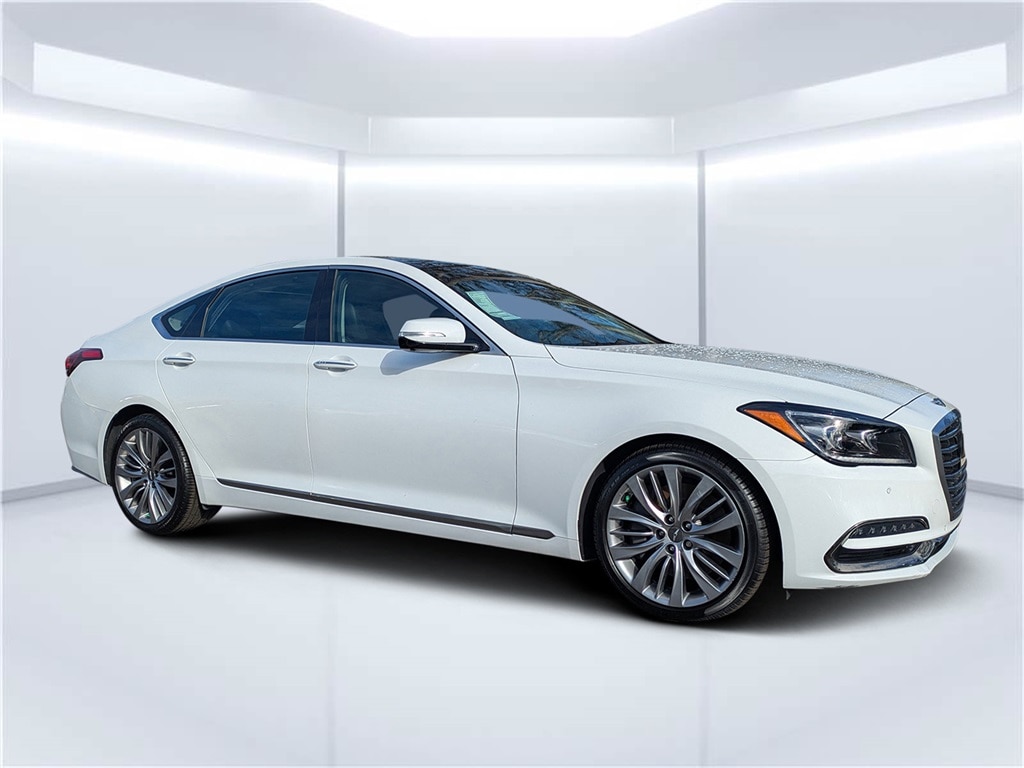 New Price! Uyuni White 2020 Genesis G80 5.0 Ultimate RWD 8-Speed Automatic with SHIFTRONIC 5.0L V8 DGI DOHC HEATED SEATS, COOLED SEATS, LEATHER, SUN/MOON ROOF, APPLE/ANDROID AUTO, WELL MAINTAINED, SERVICED, DETAILED AND READY FOR A NEW HOME!, BLIND SPOT, BLUETOOTH, EXTREMELY LOW MILES!, Pricing does not include Dealer Installed Accesories, THE ONLY 2020 G80 5.0 IN THE COUNTRY!, 17 Speakers, 4-Wheel Disc Brakes, ABS brakes, Android Auto & Apple CarPlay, Anti-whiplash front head restraints, Auto High-beam Headlights, Automatic temperature control, Brake assist, Delay-off headlights, Driver Information System w/ Multimedia Controller, Dual front impact airbags, Dual front side impact airbags, Electronic Stability Control, Emergency communication system: Genesis Connected Services, Exterior Parking Camera Rear, Four wheel independent suspension, Front anti-roll bar, Front Bucket Seats, Front Center Armrest, Front dual zone A/C, Front fog lights, Fully automatic headlights, Genuine wood dashboard insert, Genuine wood door panel insert, Heads-Up Display, Heated & Ventilated Front Bucket Seats, Heated front seats, Heated rear seats, Illuminated entry, Knee airbag, Leather Shift Knob, Leather steering wheel, Low tire pressure warning, Nappa Leather Seating Surfaces, Navigation System, Occupant sensing airbag, Option Group 01, Overhead airbag, Power driver seat, Power moonroof, Power passenger seat, Radio: AM/FM/HD/SiriusXM/MP3 Audio System, Rear anti-roll bar, Rear seat center armrest, Rear side impact airbag, Remote keyless entry, Speed-sensing steering, Steering wheel mounted audio controls, Telescoping steering wheel, Tilt steering wheel, Traction control, Ventilated front seats, Wheels: 19" x 8.5J Fr & 19" x 9.0J Rr Alloy.