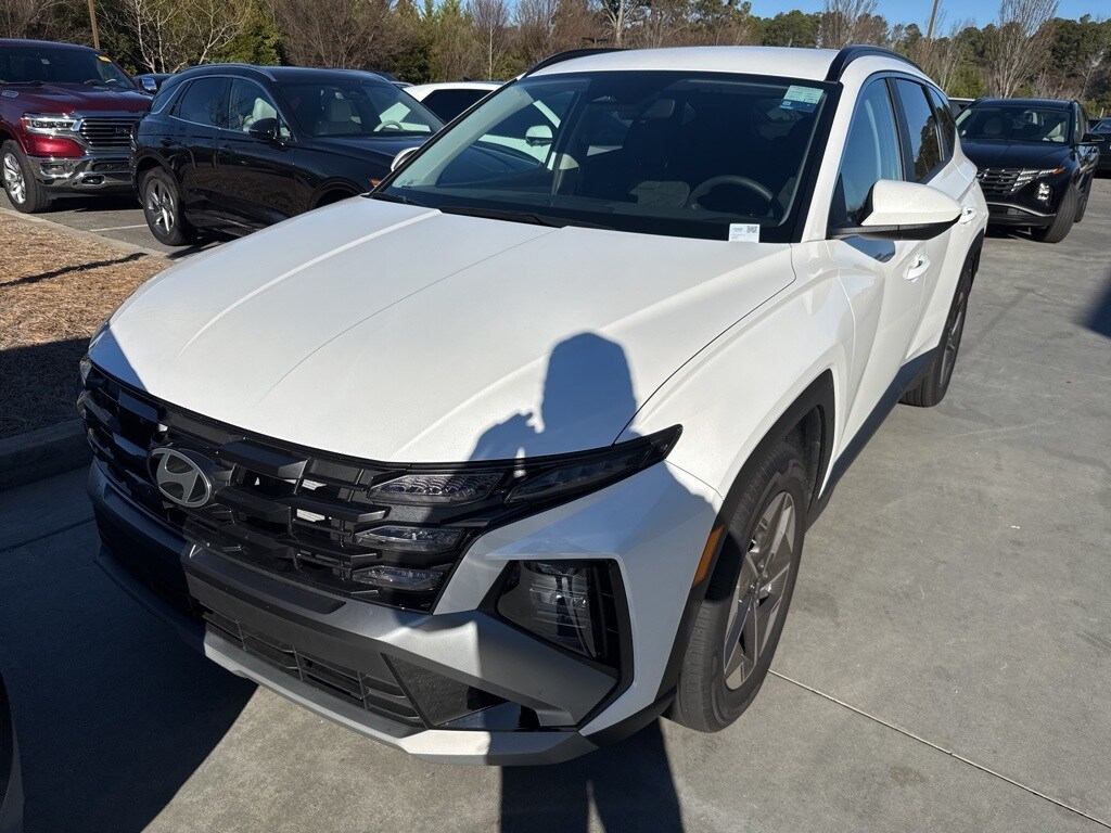 2025 Hyundai Tucson SEL FWD 8-Speed Automatic with SHIFTRONIC 2.5L I4 DGI DOHC 16V LEV3-SULEV30 187hp 18" Alloy Wheels, 4-Wheel Disc Brakes, 6 Speakers, ABS brakes, Air Conditioning, Alloy wheels, AM/FM radio: SiriusXM, Apple CarPlay & Android Auto, Auto High-beam Headlights, Automatic temperature control, Brake assist, Bumpers: body-color, Cargo Tray, Carpeted Floor Mats, Delay-off headlights, Driver door bin, Driver vanity mirror, Dual front impact airbags, Dual front side impact airbags, Electronic Stability Control, Emergency communication system: Bluelink+, First Aid Kit, Four wheel independent suspension, Front anti-roll bar, Front Bucket Seats, Front Center Armrest, Front dual zone A/C, Front reading lights, Fully automatic headlights, Heated door mirrors, Heated Front Bucket Seats, Heated front seats, Illuminated Door Sill Plates, Illuminated entry, Low tire pressure warning, Occupant sensing airbag, Option Group 01, Outside temperature display, Overhead airbag, Overhead console, Panic alarm, Passenger door bin, Passenger vanity mirror, Power door mirrors, Power driver seat, Power Liftgate, Power steering, Power windows, Radio data system, Radio: AM/FM/HD Audio System, Rear anti-roll bar, Rear Bumper Applique, Rear reading lights, Rear seat center armrest, Rear side impact airbag, Rear window defroster, Rear window wiper, Remote keyless entry, Security system, Speed control, Split folding rear seat, Spoiler, Stain & Odor Resistant Cloth Seat Trim, Steering wheel mounted audio controls, Tachometer, Telescoping steering wheel, Tilt steering wheel, Traction control, Trip computer, Variably intermittent wipers.