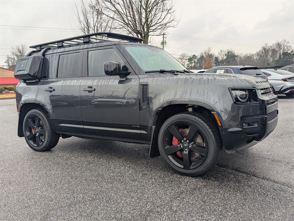2024 Land Rover Defender 110 X 4WD 8-Speed Automatic 3.0L I6 11 Speakers, 14-Way Climate Electric Memory Front Seats, 3.55 Axle Ratio, 4-Wheel Disc Brakes, ABS brakes, Adaptive suspension, Air Conditioning, Alloy wheels, AM/FM radio: SiriusXM, Apple CarPlay & Android Auto, Auto High-beam Headlights, Auto tilt-away steering wheel, Auto-dimming door mirrors, Auto-dimming Rear-View mirror, Automatic temperature control, Brake assist, Bumpers: body-color, Compass, Delay-off headlights, Driver door bin, Driver vanity mirror, Dual front impact airbags, Dual front side impact airbags, Electronic Stability Control, Exterior Parking Camera Rear, Four wheel independent suspension, Front anti-roll bar, Front Bucket Seats, Front Center Armrest, Front dual zone A/C, Front fog lights, Front reading lights, Fully automatic headlights, Garage door transmitter: HomeLink, Genuine wood console insert, Genuine wood door panel insert, Heads-Up Display, Heated door mirrors, Heated front seats, Heated rear seats, Heated steering wheel, Illuminated entry, Leather Shift Knob, Leather steering wheel, Low tire pressure warning, Memory seat, Navigation system: Connected Navigation PIVI Pro, Occupant sensing airbag, Outside temperature display, Overhead airbag, Overhead console, Panic alarm, Passenger door bin, Passenger vanity mirror, Power door mirrors, Power driver seat, Power moonroof, Power passenger seat, Power steering, Power windows, Radio data system, Radio: 400W 11 Speaker Meridian Sound System, Rain sensing wipers, Rear anti-roll bar, Rear fog lights, Rear reading lights, Rear seat center armrest, Rear window defroster, Rear window wiper, Remote keyless entry, Security system, Speed control, Speed-sensing steering, Speed-Sensitive Wipers, Split folding rear seat, Steering wheel memory, Steering wheel mounted audio controls, Tachometer, Telescoping steering wheel, Tilt steering wheel, Traction control, Trip computer, Variably intermittent wipers, Ventilated front seats, Weather band radio, Wheels: 20" Gloss Dark Grey Style 5095, Windsor Leather Seat Trim.
