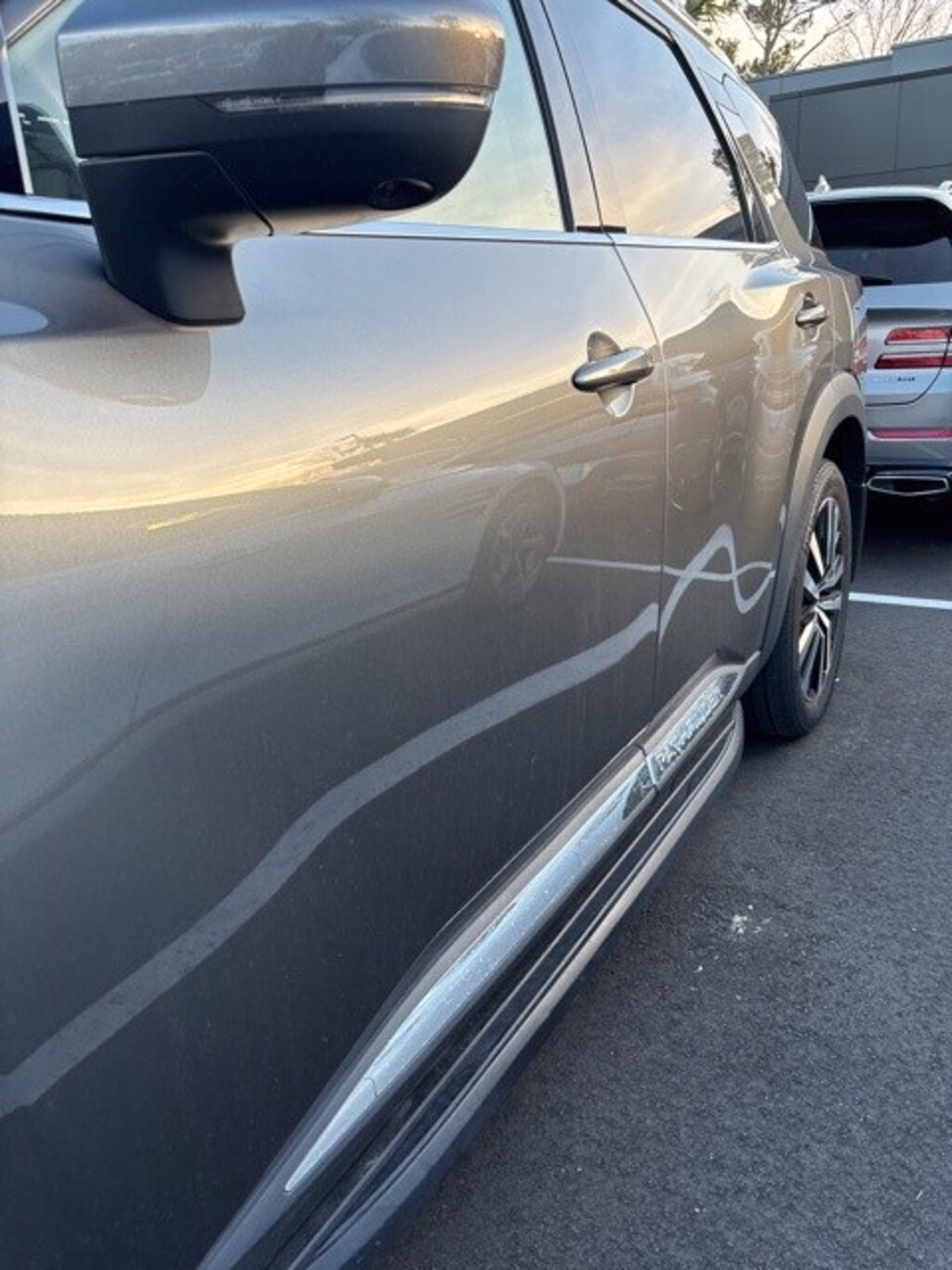 Gun Metallic 2023 Nissan Pathfinder Platinum 4WD 4WD 9-Speed Automatic V6 4WD, 13 Speakers, 3rd row seats: bench, 4-Wheel Disc Brakes, ABS brakes, Auto High-beam Headlights, Auto-dimming Rear-View mirror, Automatic temperature control, Bose Premium Audio System, Brake assist, Cargo Area Protector, Cargo Net, Cargo Package, Cross Bars, Delay-off headlights, Dual front impact airbags, Dual front side impact airbags, Electronic Stability Control, Emergency communication system: NissanConnect Services, Exterior Parking Camera Rear, First Aid Kit, Four wheel independent suspension, Front anti-roll bar, Front Bucket Seats, Front Center Armrest, Front dual zone A/C, Fully automatic headlights, Garage door transmitter: HomeLink, Heads-Up Display, Heated & Cooled Front Bucket Seats, Heated door mirrors, Heated front seats, Heated rear seats, Heated steering wheel, Illuminated entry, Knee airbag, Leather steering wheel, Low tire pressure warning, Navigation system: NissanConnect Navigation, NissanConnect w/Navigation & Services, Occupant sensing airbag, Outside temperature display, Overhead airbag, Overhead console, Power door mirrors, Power Liftgate, Power moonroof, Power passenger seat, Rear air conditioning, Rear anti-roll bar, Rear seat center armrest, Rear side impact airbag, Reclining 3rd row seat, Remote keyless entry, Running Boards, Semi-Aniline Leather Seating Surfaces, Speed-sensing steering, Steering wheel memory, Steering wheel mounted audio controls, Telescoping steering wheel, Tilt steering wheel, Traction control, Ventilated front seats, Wheels: 20" Machined Alloy w/Dark Met Gray Finish.