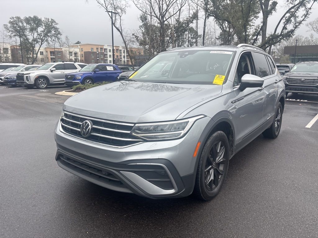 Pyrite Silver Metallic 2024 Volkswagen Tiguan 2.0T SE FWD 8-Speed Automatic with Tiptronic 2.0L TSI DOHC 3rd row seats: bench, 4-Wheel Disc Brakes, 4-Wheel Independent Suspension, 6 Speakers, ABS brakes, Auto-dimming Rear-View mirror, Automatic temperature control, Brake assist, Delay-off headlights, Driver vanity mirror, Dual front impact airbags, Dual front side impact airbags, Electronic Stability Control, Emergency communication system: VW Car-Net Safe & Secure 5-year, Exterior Parking Camera Rear, Four wheel independent suspension, Front anti-roll bar, Front Bucket Seats, Front Center Armrest, Front dual zone A/C, Fully automatic headlights, Heated door mirrors, Heated Front Seats, Heated front seats, Illuminated entry, Leather Shift Knob, Low tire pressure warning, Occupant sensing airbag, Outside temperature display, Overhead airbag, Passenger vanity mirror, Perforated V-Tex Leatherette Seating Surfaces, Power door mirrors, Power Liftgate, Radio: MIB3 Composition Media AM/FM/HD, Rain sensing wipers, Rear anti-roll bar, Rear reading lights, Rear seat center armrest, Rear window wiper, Remote keyless entry, Speed-sensing steering, Split folding rear seat, Steering wheel mounted audio controls, Telescoping steering wheel, Tilt steering wheel, Traction control, Turn signal indicator mirrors, Variably intermittent wipers, Wheels: 18" Dark Graphite Painted 10-Spoke Alloy.