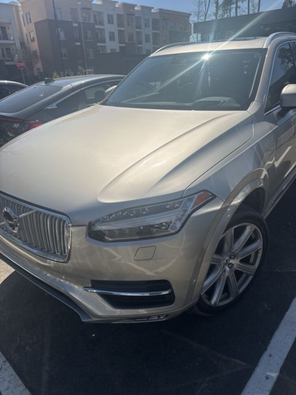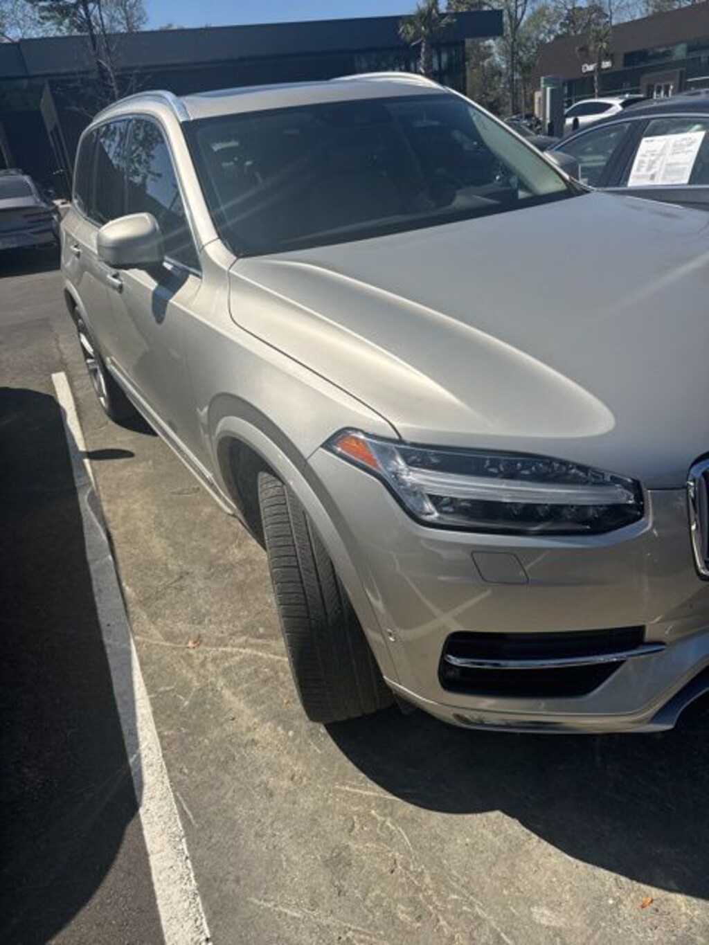 New Price! Luminous Sand Metallic 2018 Volvo XC90 T6 Inscription AWD Automatic with Geartronic I4 Supercharged AWD, Amber w/Leather Seating Surfaces w/Charcoal Interior, 10 Speakers, 4-Wheel Disc Brakes, A/V remote, ABS brakes, Anti-whiplash front head restraints, Apple CarPlay/Android Auto, Auto High-beam Headlights, Auto-dimming Rear-View mirror, Brake assist, Dual front impact airbags, Dual front side impact airbags, Electronic Stability Control, Emergency communication system: Volvo On-Call, Exterior Parking Camera Rear, Four wheel independent suspension, Front anti-roll bar, Front Bucket Seats, Front dual zone A/C, Fully automatic headlights, Genuine wood dashboard insert, Genuine wood door panel insert, Heated door mirrors, Heated Front Bucket Seats, Heated front seats, Illuminated entry, Knee airbag, Leather Shift Knob, Low tire pressure warning, Nappa Leather Seating Surfaces w/Charcoal Interior, Navigation System, Occupant sensing airbag, Outside temperature display, Overhead airbag, Power Liftgate, Power moonroof, Power passenger seat, Radio: High Performance Audio System, Rear anti-roll bar, Rear dual zone A/C, Rear Parking Sensors, Rear seat center armrest, Remote keyless entry, Speed-sensing steering, Split folding rear seat, Steering wheel mounted audio controls, Telescoping steering wheel, Tilt steering wheel, Traction control, Wheels: 20" 10-Spoke Tinted Silver Diamond Cut.